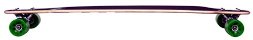 Full maple laminate deck; reverse King Pin (RKP) longboard trucks with 245-millimeter axles