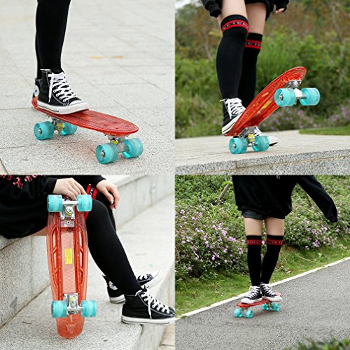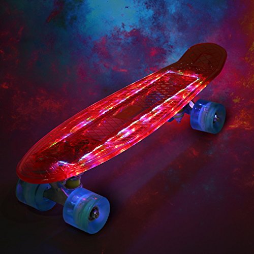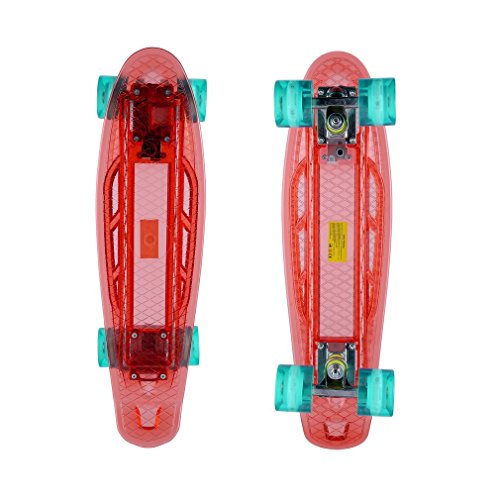 Specification: Homgrace 22″ Skateboard Complete Classic Retro Luminous Cruiser Plastic Skate Board with LED Light Up Wheels