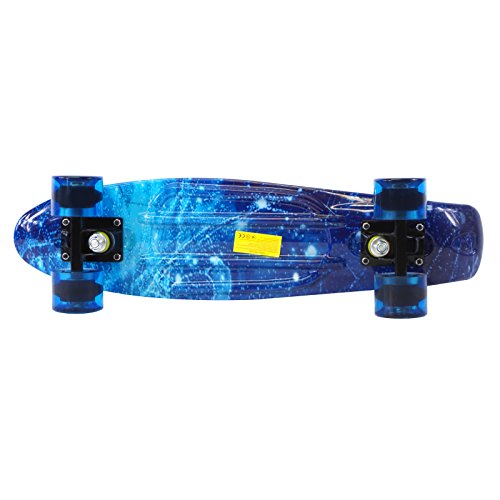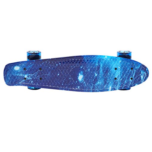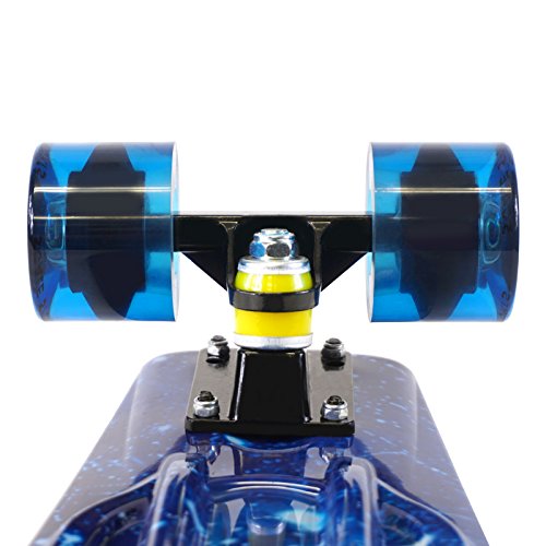 ABS plastic deck, durable high grade trucks and 4 smooth PU wheels with ABEC-7 bearings provide flexing that allows you to cruise on any flat surface.