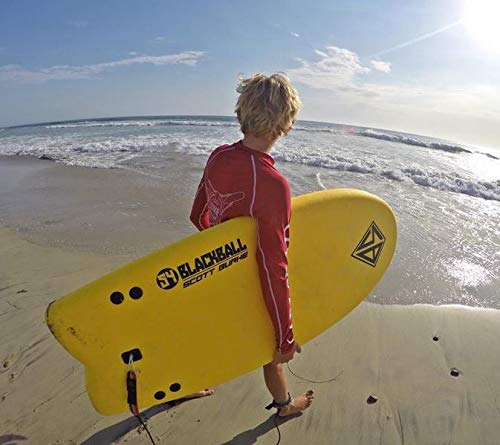 The 54″ Burke Black ball breaker (foam) is the perfect solution to a surfers nemesis – the dreaded blackball flag. Many beaches put a damper on a good swell by restricting areas to only surfers or only swimmers, when the blackball flag is up – hardtop surfboards are not permitted In the water with the swimmers -but with this blackball breaker SURFBOARD, the possibilities are endless! You can easily remove the 2 bottom fins to this soft top Hybrid SURFBOARD eligible to return to the water even when the other surfboards are blackballed from the waves. It’s wide shape and construction allow the board to be used for bodysurfing or surfing without the fins if you need to. This hand shaped design has a heat laminated EPS foam core, a slick 4 Channel bottom with a full graphic, fish shaped tail, and molded nylon leash plug. The 2 removable fins are included along with a Surf leash that attaches to your ANKLE so don’t lose the board in the waves. Dims[54″x 22″x 2. 5″] and 5lbs. Recommended weight capacity up to 140 lbs depending on skill level. ***Color received may vary. This item comes in blue or Yellow.