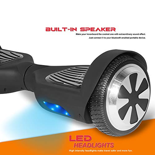 Specification: TechClic Electric Hoverboard Self-Balancing 6.5 Inch Wheel Built in Speaker LED Headlight UL Certifie (Solid Black)